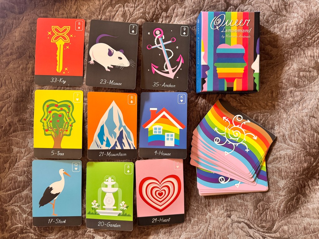 I just love the rainbow colours of the beautiful Queer Lenormand deck which was created by the wonderfully talented Marianna Andrade. This was the deck that made Leno accessible to me as a gay male Witch and I am forever grateful to Marianna for its creation! So, what do we have today my lovelies? Well, I decided to grab my deck and ask the question “What do we need to know today?”, so let’s get into this.